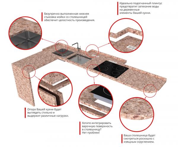 Удачно подобранная и правильно установленная столешница в интерьере любого офиса преобразует его до неузнаваемости, принося с собой ощущение выдержанности либо, напротив, чувство роскоши. Она позволяет акцентировать внимание на наиболее интересных и примечательных деталях, при этом скрывая недостатки. Сегодня столешницы изготавливаются как из искусственных, так и из натуральных материалов. Однако в офисах, где всегда большой поток посетителей и сотрудников, имеет смысл устанавливать столешницы из полированной нержавеющей стали. Они отличаются долговечностью и износостойкостью. А возможность покрывать ее поверхность красками различных цветов обеспечивает сочетаемость с любым декораторским оформлением, исполненным профессионалом. Кроме того, столешницы из полированной нержавеющей стали могут быть самой разнообразной формы, что только расширяет границы их применения. Наш интернет магазин Quartzetto предлагает Вам приобрести столешницы различных видов, в том числе и столь популярные столешницы из полированной нержавеющей стали. Весь наш товар изготовлен на высокоточном и современном технологическом оборудовании, что гарантирует Вам долговечность и высокое качество приобретенной столешницы.