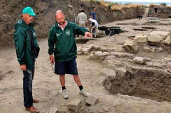 Владимир Кузнецов рассказывает: «Сколько работал в Фанагории, а я там работаю больше сорока лет, я никогда не знал где находится акрополь. Мы его искали, не могли найти. Потому что это место выделяющееся всегда, либо холм какой-то, либо укреплённое место. По иронии судьбы оказалось, что я всю жизнь работаю на акрополе. Вот сколько я работал там, я всё время практически работал на территории акрополя и понять мы это смогли потому что в один момент мы нашли очень большое здание, которое сгорело при сильном пожаре. Здание огромное, мы его до сих пор не исследовали до конца. Сильный пожар, датируется примерно монетами первого века до н.э. и понять что это такое невозможно абсолютно. Но потом при помощи скажем так внимательного анализа монет, которые мы нашли в огромном количестве в этом здании, мы пришли к выводу, что это здание, которое погибло в пожаре в 63 году до н.э. А раз так, значит мы находимся на акрополе. А раз так, это здание резиденция царя Митридата, в котором находились его дети. И стало это всё выстраиваться в очень интересную картинку».