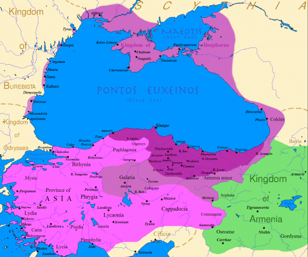 Говорят, Митридат был одним из любимых исторических героев императора Павла I. Вероятно, Павел видел в античном царе родственную душу. Он тоже винил мать в гибели отца. Как известно Екатерина II организовала заговор против собственного супруга Петра III, после чего стала императрицей и Павлу, как и Митридату тоже пришлось ждать не один год пока мать освободит трон. Но если Павел наследовал сильную и могучую державу, то Митридату страна досталась в плачевном состоянии. Все завоевания его отца были утрачены. Римляне прибирали к рукам окраины государства и настраивали соседей против Митридата. Пожалуй, единственной ценностью, которой ещё могло похвастаться Понтийское царство, был выход к Чёрному морю. Но Митридату и этого оказалось достаточно. С годами он не только вернул былое величие своей державе, но и значительно расширил её границы. Чёрное море фактически стало внутренним морем его империи.