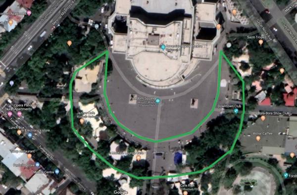 В частности, хозяйствующие субъекты, арендовавшие земельные участки по соседству с Национальным академическим театром оперы и балета имени А.Спендиаряна, на отрезке, примыкающем к Площади Свободы и открывшим кафе, от соответствующего департамента мэрии получили уведомления. Им предлагается отказаться от некоторых арендованных земельных участков, представленных на фотографиях (отмечены зеленым цветом).