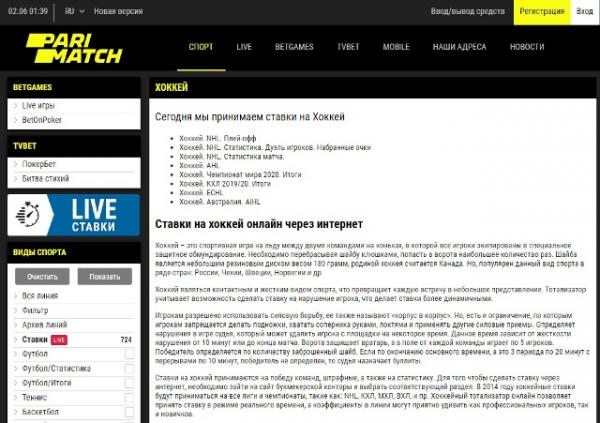 Пользователи давно облюбовали хоккей в качестве прибыльного вида спорта, на котором можно заработать. И БК Париматч как раз и предоставляет такие шансы, обозначив немало событий, на которые разрешено делать ставки. Итак, букмекерская контора Париматч допускает ставки на хоккейный матч на следующие события, которые включают в себя чистую победу одной из команд; суммарное число заброшенных шайб; результативность периодов и т.д. И как говорят эксперты: при знаниях об обеих командах, которые состязаются, хоть одна ставка да и выстрелит. При этом, значительно выросли ставки, которые совершаются на броски в створ ворот и штрафное время.