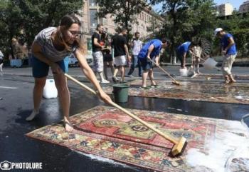 Идея всенародных избранников помыть ковры у парламента в день праздника Вардавар была встречена в обществе неоднозначно. Не то, чтобы люди не хотели депутатам чистых ковров, просто зашкаливал креатив и обезоруживала оригинальность придумки. Истоки креатива, впрочем, обнаружились через пару недель после торжественного намывания.