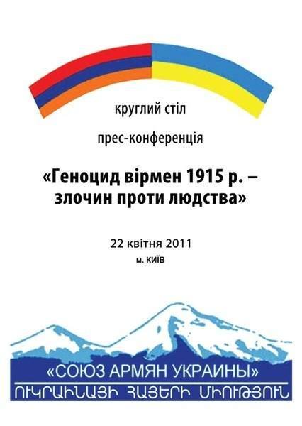 В рамках мероприятий, приуроченных к 96-ой годовщине Геноцида армян 1915 г., 22 апреля в столице Украины пройдет Круглый стол, посвященный обсуждению актуальных вопросов, связанных с проявлениями геноцида и его последствий. Будет дана правовая оценка и осуждение как упреждающий фактор в предотвращении подобных злодеяний.