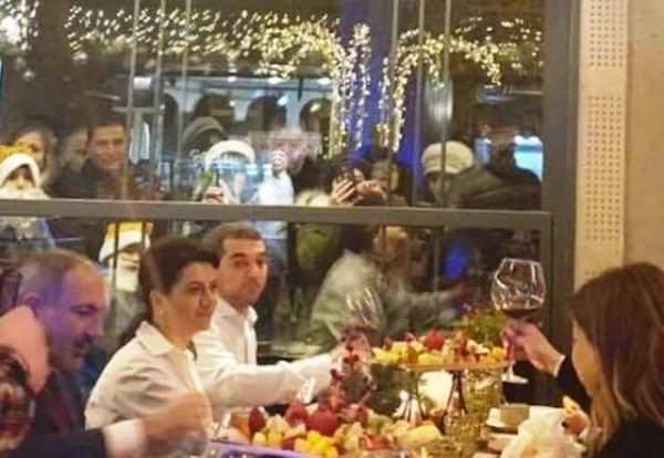 Не знаю, что там с хот-догами для народа, но вечер у семьи Пашинян явно удался судя по фото гуляющему в сети. Народ сморит в окна, где за столом бокалы семьи Пашинян касаются друг друга и под сотни фотоаппаратов и видеокамер новогодний праздник превращён в фарс!