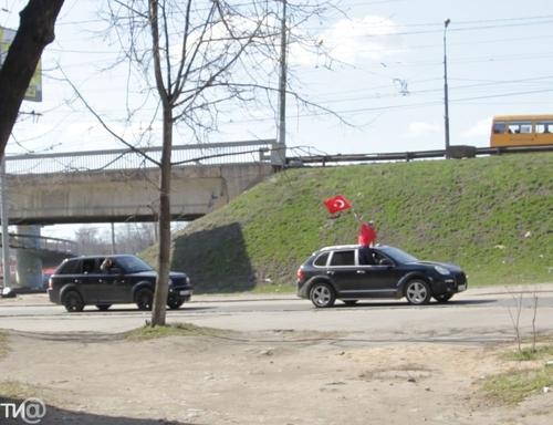 В статье размещена фотография внедорожников с развивающимися турецкими флагами разъезжающих по городу в день Геноцида армян. Автор фотогрфии – Владимир Беляев с сайта tvernews.ru. «Флаг этот все видели. Мне позвонили сообщили, что по городу ездят машины с турецким флагом, я сразу связался с представителями азербайджанской диаспоры. Но все произошло очень быстро они договорились о встрече и подрались», - пояснил председатель регионального отделения общественной организации «Союз армян России» Сейран Кочканян.