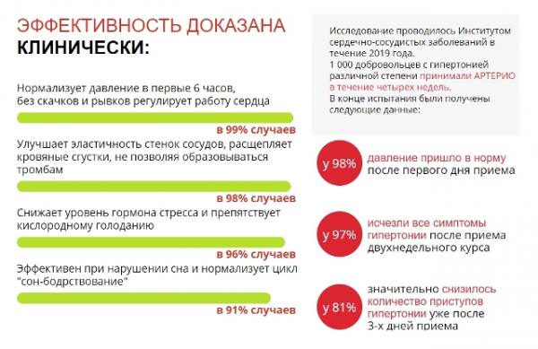 Благодаря всестороннему воздействию Артерио от давления, можно справиться с гипертонией вне зависимости от причин ее возникновения. Лекарство не подходит лишь для неотложной помощи при гипертоническом кризе, ведь тогда нужно срочно убрать симптомы. После устранения опасности препарат можно дальше применять для лечения.
