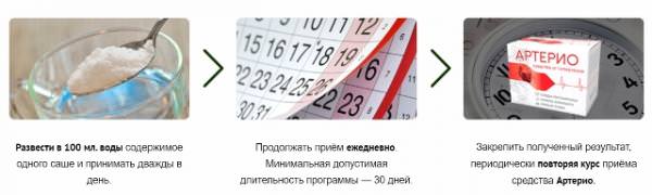 В профилактических целях Артерио принимается 1 раз в сутки в течение 30 дней. После того, как давление приходит в норму, прием препарата не прекращается для закрепления результата.