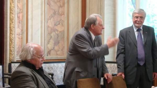 Александра Божко пришли поздравить знаменитый украинский писатель и общественный деятель, президент общества «Украина-Армения», Герой Украины Иван Драч (слева) и легенда советской и украинской дипломатии Министр иностранных дел Украины (1994-1998) президент 52-ой сессии Генеральной Ассамблеи ООН Геннадий Удовенко (в центре).