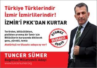 Как передает агентство Firat, предвыборный лозунг независимого кандидата в депутаты из Измира, националиста Тунджера Сюмера стал поводом для обсуждений.