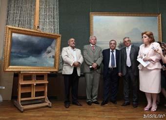 На днях специальным рейсом из Москвы в Армению была доставлена картина всемирно известного мариниста Ованнеса Айвазовского "Буря у скалистых берегов", похищенная более 20 лет назад из здания Армянского общества культурных связей (АОКС). В Национальной картинной галерее Армении состоялась официальная церемония ее передачи настоящему владельцу – нашему государству. Обнаружен был шедевр мировой живописи на аукционе художественных произведений "Гелос" в Москве в феврале этого года. Хозяином картины оказался наш московский соотечественник, сенатор Российской Федерации Ованес Арменакович Оганян.