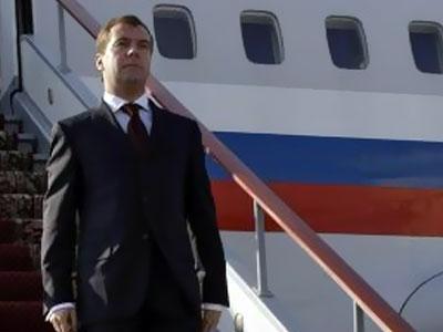 В 16:05 самолет с президентом России Дмитрием Медведевым на борту совершил посадку в международном аэропорту "Казань".