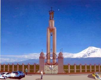 В центре композиции - монумент, выполненный в форме звонницы (колокольни). Две устремленные вверх арки образуют своими опорами в плане крест. В арочном своде подвешен колокол диаметром в 1,2 м. Колокольню венчает бронзовая композиция в виде двух женских и двух мужских фигур, олицетворяющих Армению и Россию. Общая высота монумента с крестом - 50 м. Территория парка с четырьмя парадными воротами - 2,3 гектара.