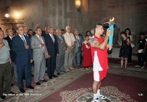 Сегодня мы принимаем участие в крайне важном и символичном мероприятии. Через считанные минуты в соборе Св.Иоанна Крестителя Гандзасара будет зажжен факел 5-ых Всеармянских игр. И это не случайно. За последние 20 лет Нагорный Карабах стал символом объединения всего армянства.