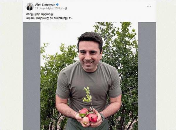 И это тот самый Ален Симонян, который организовал гранатовое шоу в Агдаме, заявляя, что Акна (Агдам) – это его родина. Ален делал это после смены власти 2018-го, пытаясь показать, будто они противопоставляются Сержу Саргсяну, который годами ранее с иронией высказался о тех людях, которые заявляли, что Агдам – это их родина.