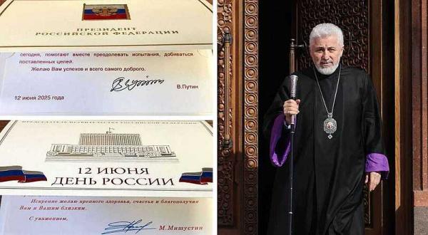 12 июня Президент РФ Владимир Путин и Председатель Правительства РФ Михаил Мишустин поздравили главу Российской и Ново-Нахичеванской Епархии Армянской Апостольской Церкви архиепископа Езраса Нерсисяна с Днем России.