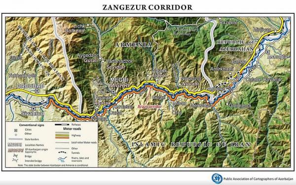 А вот и первые ласточки "мира", который нам обещали. Общество картографов Азербайджана опубликовало карту Зангезурского коридора, который конечно так и называется, Зангезурский коридор. Глупую демагогию армянских властей никто всерьез не принимает.