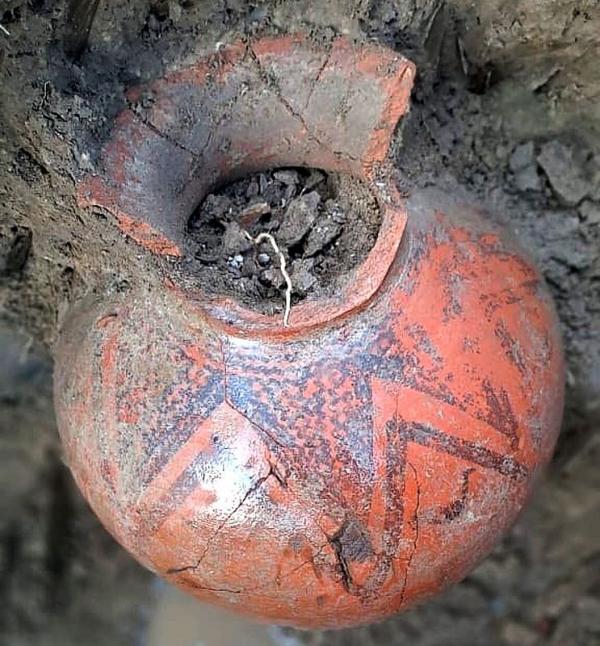 На данный момент найдено пять сосудов, часть из них расписные, а также кости животных, принесенных в жертву.