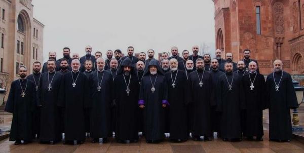 Мы, духовные служители Богохранимой епархии, приносим сыновнюю покорность и выражаем безусловную верность и преданность Первопрестольному Святому Эчмиадзину, церковному канону и избранному народом Патриарху – Его Святейшеству Гарегину Второму, Католикосу Всех Армян, неизменно продолжая осуществлять наше богоданное служение на армянском духовном и национальном поприще. Призываем всех оставаться верными единству Матери-Церкви и своему духовному обету.