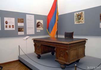 От многих экспонатов буквально не оторвать глаз, настолько они интересны. Вот большая фотография членов армянского Ревкома, отправивших 29 ноября 1920 года из Карвансарая (нынешний Иджеван) телеграмму Ленину с сообщением, что в Армению пришла советская власть. На нас смотрят еще совсем молодые мужчины, многие из которых впоследствии были расстреляны. А пока у них хоть и усталые, но очень счастливые лица. У стены тот самый телеграфный аппарат, с которого предположительно и была послана телеграмма. В витрине первая печать Ревкома и чернильный прибор Саркиса Касьяна - первого главы армянского Ревкома. Чернильные приборы, часы, курительные трубки, очки, мундштуки можно встретить и в других витринах. Они принадлежали большевикам Саркису Лукашину, Сааку Тер-Габриеляну, Асканазу Мравяну… При взгляде на массивный письменный стол с традиционным зеленым сукном из кабинета Александра Мясникяна (Мартуни) и на не менее массивный телефонный аппарат в памяти всплывают строчки Маяковского: "Гвозди бы делать из этих людей, крепче бы не было в мире гвоздей". Советская идеология умела создавать нимбы и мифы.