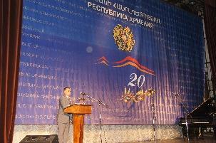 Чрезвычайный и Полномочный Посол РА в РФ Олег Есаян назвал 20-летие независимости Республики Армения «очень важной датой» для армянского народа. «В созвездии государственных и национальных праздников каждого народа, в качестве самой яркой звезды сияет День государственной независимости, потому что независимость — это право народа на суверенную родину, возможность полноправного общения с другими народами, условие сохранения национальной самобытности, участие в развитии и умножении общечеловеческих ценностей», - отметил он.