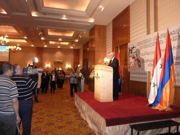 29 сентября в городе Дамаске состоялся прием, посвященный 20-летию независимости Республики Армения. На праздничном мероприятии присутствовали члены правительства и парламента Сирии, руководители аккредитованных в Сирии дипломатических представительств, общественные и политические деятели, руководители общественных организаций и организаций армянской общины, духовные лидеры и журналисты.