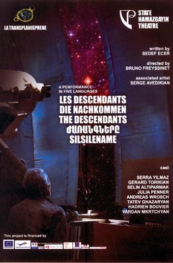 Международный проект, информация о котором в течение года периодически появлялась в прессе, наконец реализован. С 21 по 29 октября, с интервалами, на сцене Государственного театра "Амазгаин" пройдут показы спектакля "Наследники" - ко-продукции Франции, Армении, Германии и Турции. Цель спектакля - попытка осмысления общего прошлого, стремление путем искусства стереть разделяющие нас границы и найти пути к примирению.