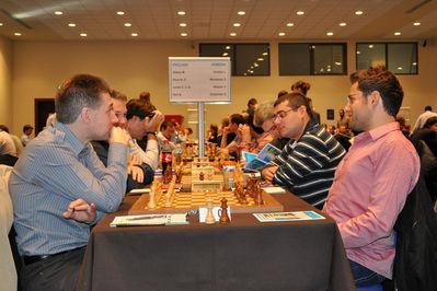 В третьем туре командного чемпионата Европы по шахматам мужская сборная Армении свела матч вничью 2:2 с командой Англии. Как сообщает Информационный Центр газеты армян России «Еркрамас», вничью завершили свои партии Левон Аронян и Сергей Мовсесян, Владимир Акопян потерпел поражение и Габриэл Саркисян победил.