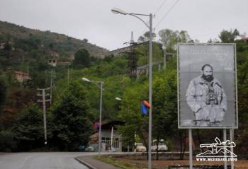 Плакат, посвященный национальному герою Армении и Арцаха, легендарному командиру, философу и воину, активному деятелю национально-освободительной борьбы армянского народа, Монте Мелконяну установлен в Кашатагском административном районе Нагорно-Карабахской Республики, на подступах к городу Бердзор (автомагистраль Горис-Степанакерт).