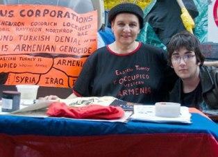 Поэтому я решила ночевать в палатке на захваченной Уолл-стрит и создать армянский информационный стол. Я сделала листовки и плакат о том, что корпорации военной машины США, как «Goodrich», «Chevron», «Raytheon», «Exxon», «United Technologies» и «Northrop Grumman», тратят более $7 млрд. долларов в продажах Турции, а также тратят миллионы долларов на лоббирование конгрессменов США для того, чтобы они не приняли законопроект о признании Геноцида армян 1915 г.