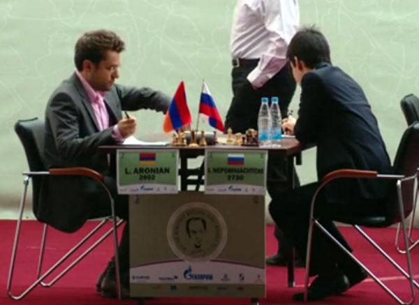 Напомним, что в первом туре Левон Аронян сыграл вничью с норвежцем Магнусом Карлсеном, во втором с Владимиром Крамником из России, в третьем победил Василия Иванчука из Украины, в четвертом завершил вничью партию с Вишванатаном Анандом из Индии, в пятом с американцем Хикару Накамура, в шестом с израильтянином Борисом Гельфандом, в седьмом с Сергеем Корякиным из России и в восьмом туре прервал серию ничьих, победив россиянина Петра Свидлера.