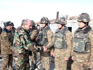 Президент НКР Бако Саакян 31 декабря посетил южный участок передовой линии границы между НКР и Азербайджаном и поздравил солдат, несущих боевое дежурство, с Новым годом и Рождеством.