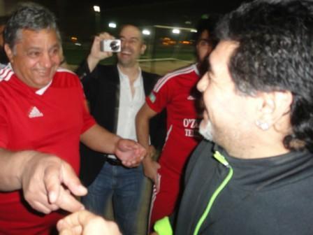 Марадона и Оганесян имели короткую беседу. Аргентинец пристально следил за тренировкой узбекской команды, сообщает сайт «Локомотива».
