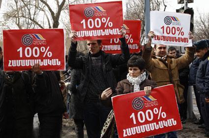 Сегодня представители Армянской революционной федерации Дашнакцутюн, Армянского Национального Конгресса и партии “Наследие” организовали акцию протеста перед зданием Национального Собрания Армении, требуя перехода на стопроцентную пропорциональную избирательную систему. Депутаты и лидеры этих политических сил объединились под этим требованием.