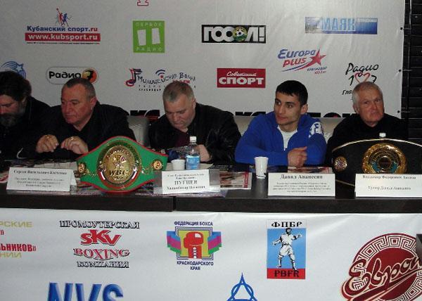 Сегодня в Краснодаре состоялась пресс-конференция с участием боксеров, на которой побывали и корреспонденты ИЦ «Еркрамас». По словам нашего соотечественника, он отлично подготовлен к предстоящему бою и уверен в своей победе. Такого же мнения придерживаются и эксперты, считающие, что в пользу Давида Аванесяна говорит не только фактор родных стен, но и уверенное проведение боев - в активе Давида девять побед и ни одного поражения. За неполные три года выступлений на профессиональном ринге Давид Аванесян вошел в десятку лучших молодых боксеров планеты. Он не только дважды признавался сильнейшим в России в своем весе, но и выиграл звание чемпиона планеты среди молодежи по версии WBC – в прошлом году наш соотечественник в финальной титульной битве не оставил шансов на успех другому кенийцу, Самуэлу Камау. Давид Аванесян победил чемпиона Африки уже в третьем раунде техническим нокаутом.