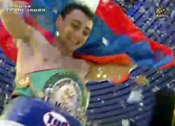 Напомним, что помимо главного боя вечера, сегодня состоялись еще несколько поединков. В одном из них, за звание и пояс чемпиона России в весовой категории 79 кг. по версии международного спортивного журнала «Про Бокс» между армянином Вараздатом Черниковым (Новороссийск) и азербайджанцем Фуадом Мурадовым (Москва), победу также праздновал наш соотечественник, в четвертом раунде техническим нокаутом.