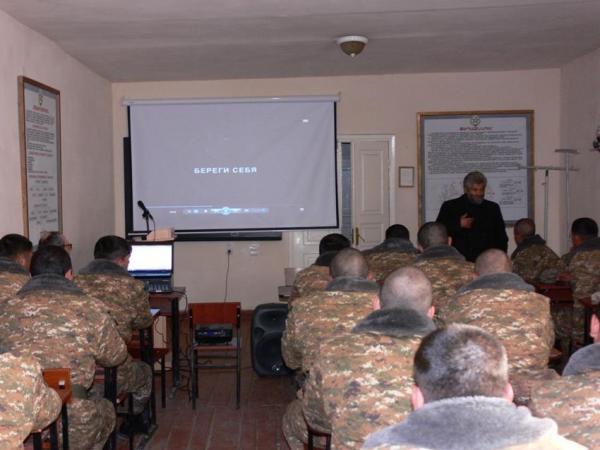 Не менее актуальной задачей является пропаганда здорового образа жизни среди военнослужащих. Наряду с пропагандой физического здоровья особая роль отводится духовному оздоровлению личности и понятию” в здоровом теле-здоровый дух”, которые сегодня нуждается в перефразировке, поскольку по словам руководителя проповедеческого центра ААЦ Карена Апресяна (Отца Акопа), кто непосредственно проводит встречи с военнослужащими, невозможно без здорового духа иметь здоровое тело. Если человек духовно здоров, то это , как правило, благотворно сказывется и на физическом здоровье. Уже началась реализация программы по пропоганде ЗОЖ в в/ч АО НКР.