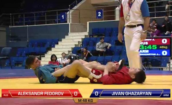Дживан Казарян (48 кг), одолев всех своих соперников, вышел в финал юношеского турнира, в котором, к сожалению, уступил россиянину Александру Федорову. Отметим также серебряную медаль нашего соотечественника из России Самвела Галстяна, которую он завоевал в заключительном поединке первого дня в категории до 82 килограммов.