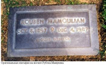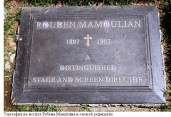 Среди множества именитых могил я без труда нашел могилу Мамуляна. Но каково же было мое удивление, когда прочел совершенно другую надпись: "Выдающийся режиссер театра и кино" (Rouben Mamoulian 1897–1987. A DISTINGUISHED STAGE AND SCREEN DIRECTOR).