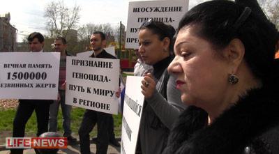 У посольства Турции в Москве состоялся пикет армянской молодежи, участники которого требовали официального признания властями Турции факта Геноцида армян в 1915-22 гг. Несколько десятков активистов вышли к посольству с транспарантами и флагами России и Армении.
