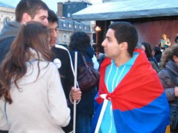 Накануне вечером около двухсот представителей армянской молодежи Парижа участвовали в бдении на площади Пантеона. Один из организаторов мероприятия Егише Горизян, он же представитель "Нор Серунд", молодежного крыла армянской революционной партии Дашнакцутюн присутствовал на манифестации.