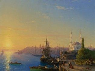 Айвазовский впервые посетил Константинополь в 1845 году как официальный художник Российского Адмиралтейства. Художник не раз обращался к теме этого города, у него есть картины с видами Айи-Софии и бухты Золотого рога, но большинство из них не очень большого размера. Данная же работа с изображением оживленной жизни порта с мечетью Топхане Нусретие является достаточно монументальным полотном.