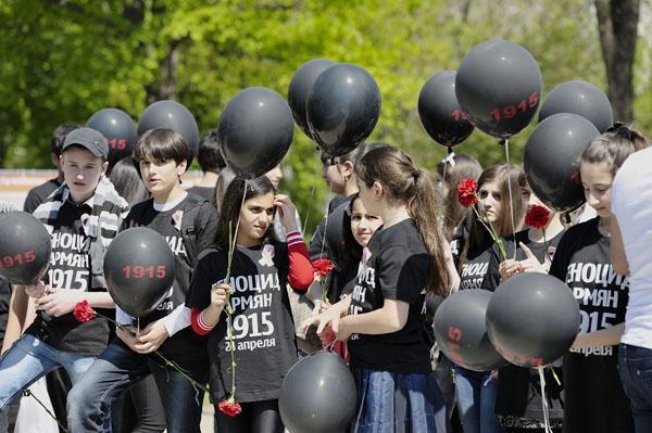 После того как председатель Местного отделения Союза армян России С.Карибжанянц объявил минуту молчания, в небо взметнулись 200 воздушных шаров. Звучал дудук, стихи армянских поэтов в исполнении учащихся воскресной школы при армянской церкви и школ города.