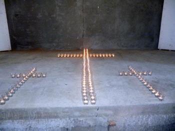 Армянская молодежь организовала акцию «Свеча памяти», в ходе которой из свечей были выложены христианские кресты.