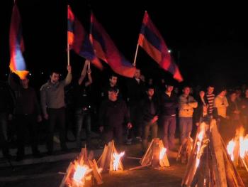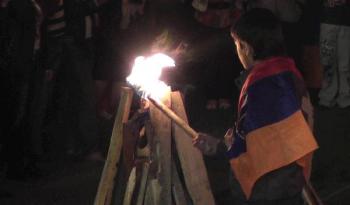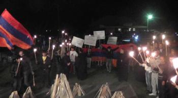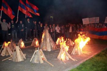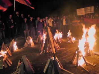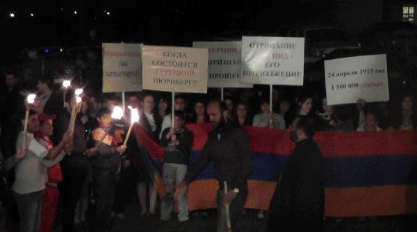 Акция началась с символичного действия, когда участники траурных мероприятий, неся плакаты, лозунги, зажженные поминальные свечи и факелы, флаги России, Армении, иностранных государств, а также международных организаций, признавших и осудивших геноцид армянского народа, подойдя к месту митинга у церкви «Сурб Аствацацин», от факелов и поминальных свечей зажгли 12 больших костров, символизирующих 12 областей, где было совершено это чудовищное преступление перед человечеством. На угольки от костров школьниками и студентами был просыпан благовонный ладан, который символизировал присутствие ангелов и чистые души безвинно убиенных жертв Геноцида.