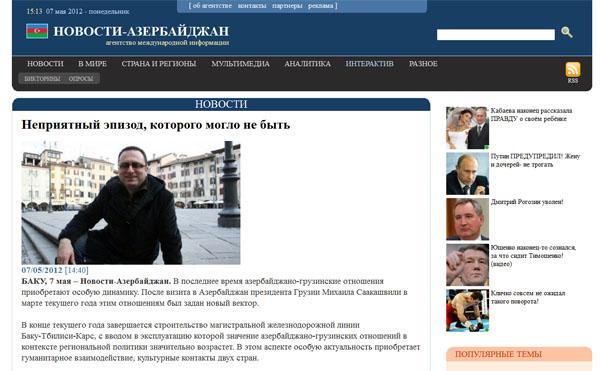 …Инцидент, произошедший недавно со съемочной группой популярного грузинского русскоязычного телеканала «Пик» в Азербайджане вызывает, по меньшей мере, недоумение, если не сказать досаду и огорчения.