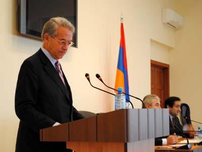 В своем слове член французского Сената, председатель финансовой комиссии Филипп Марини отметил: “К счастью, война окончилась победой единства вашего маленького народа. Именно за счет вашего героизма и героизма ваших отцов Нагорный Карабах на протяжении 20 лет находится в состоянии мира. И то, чего вы достигли за эти годы, что очень дорого для вас, пока не признано международным сообществом. Правда, мир не отрицает существование вашего государства, но в то же время не признает вашей независимости». Он добавил, что международные отношения должны подчиниться логике реальности. «Все наши коллеги по доброй воле и ключевые исполнители ролей международного сообщества полагают, что честность диктует признание. Мир на Южном Кавказе и, в частности, в Нагорном Карабахе, являются неоспоримой ценностью и обстоятельством, позволяющим самим решать собственную судьбу».