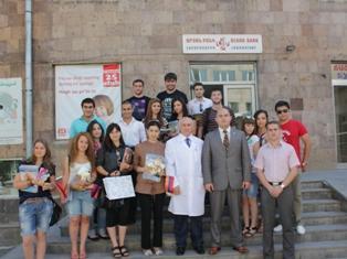 В Международный день защиты детей 1 июня студенты Российско-Армянского (Славянского) университета навестили детей, страдающих лейкемией, в Гематологическом центре, сдали для них кровь и преподнесли подарки.