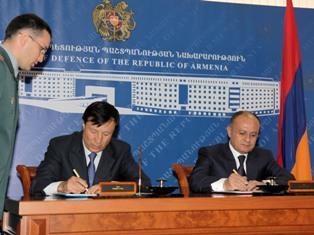 Министр обороны Казахстана Адилбек Джаксыбеков и руководимая им делегация 5 июня прибыла в Армению с официальным визитом. Как сообщили Новости Армении - NEWS.am в пресс-службе министерства обороны Армении, после торжественной церемонии приема министр обороны Казахстана провел встречу со своим армянским коллегой Сейраном Оганяном, а также с руководящим составом Минобороны и Генштаба. В ходе встречи министр обороны Армении наградил А. Джаксыбекова юбилейной памятной медалью «20 лет Вооруженных Сил Армении».