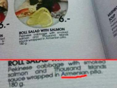 Несколько дней назад сайт «Хаккин.аз» опубликовал фотографию меню «Travelers's Coffee»- одного из престижных бакинских ресторанов. На фото в ингредиентах одного из блюд был отмечен армянский лаваш.