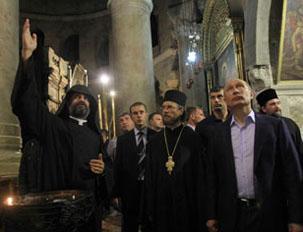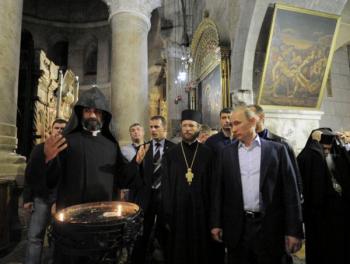 В ходе визита в Израиль президент России Владимир Путин посетил Храм Гроба Господня, в том числе и кувуклию, куда снисходит благодатный огонь. У входа в храм Путина встретил настоятель Исидор и патриарх иерусалимский Феофил Третий, а также другие монахи. Глава государства, зайдя в храм, преклонил колени у Камня помазания, а затем его проводили в кувуклию — часовню, построенную над гротом, где был похоронен Иисус Христос и куда сходит благодатный огонь. Путин также поднялся на Голгофу, где преклонил колени перед святынями, и спустился в пещеру, где был найден Крест распятия.